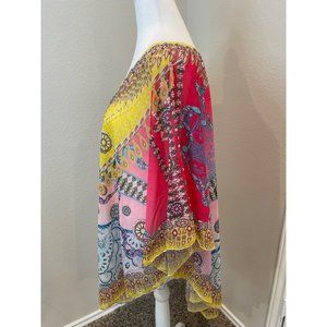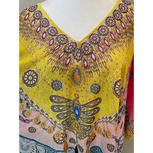 R Fashion Yellow Multi Print Cover Up Poncho Bead Detail