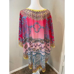 Size OS. Bead detail, can be worn as beach/swimsuit cover up, mini dress, tunic, etc. Excellent condition.