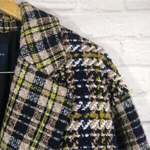 R French Connection Belinda Multicolor Wool Blend Plaid Tweed Utility Coat 8 details: