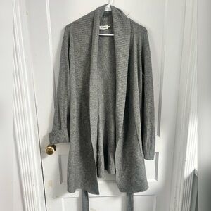 R I Label Cashmere Wool Ribbed Open Front Longline Duster Cardigan Size L $378