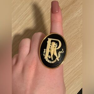 "R" INTIAL GOLD TONE RING SIZE 6-7 ADJUSTABLE RING EXCELLENT CONDITION