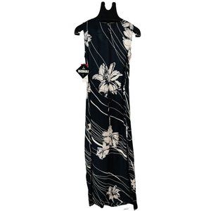 R & K Black Long Tie Back Women size 6 rayon Black Tropical Sequin Beads