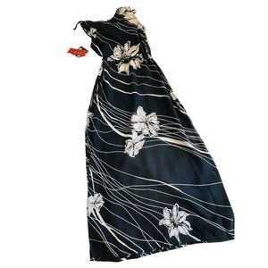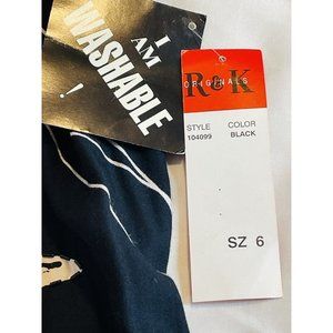 R & K Black Long Tie Back Women size 6 rayon Black Tropical Sequin Beads.