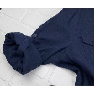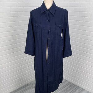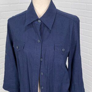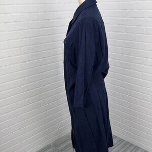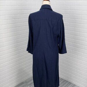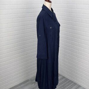 R &K Dress Women 14 Blue Shirt Button Linen Blend Lined Midi Classic