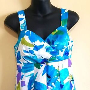 R & K ORIGINALS MULTI-COLOR BRIGHT FLORAL SHEEN PRINT SLEEVLESS DRESS Sz 4P