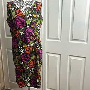 R & K Orginals Fit And Flare Rose Flower Bold Bright Dress 14