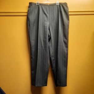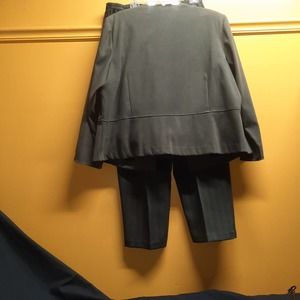 R & K Originals Brushed Olive Khaki Green 3-piece Blazer, Top and Pinstripe Pant set. Olive Khaki green herringbone pants with lighter pinstripe with back elastic waistband and back zipper. Preowned EUC. See all pictures as part of description.