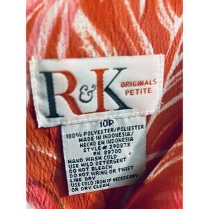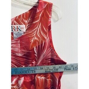 R K Originals Dress 10P Petites Red Pink Faux Wrap Tropical Floral Sleeveless