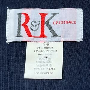 R & K Originals Pant Suit 2 Piece Size 14 Blue Short Sleeve Top Elastic Waist Pants