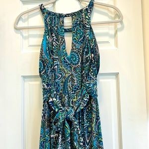 R & K Originals Print Jersey Dress with Halter Style Neck and Built In Bra sz.6