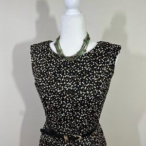 R & K. Sz 6 dress Fit & Flair. Has a tiny square pattern Black belt Silky feel