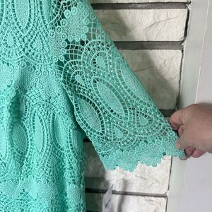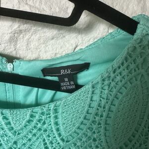 R & K Women's Size 18 Mint Green Lined Lace Knee Length Sheath Dress Cocktail