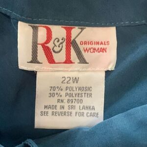 R & K Women’s Size 22W Soft Silky Button Down Shirt Blue Polynosic 3/4 Sleeve