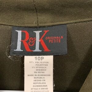 R & K originals olive green jacket, very soft & soft on inside too, good cond