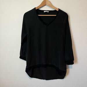 R | Label Black Silk V-Neck Lightweight High Low Blouse Top Women's Size XS