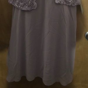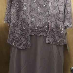R & M Collection Lavender dress silky sheer bottom, sleeveless top with sequins. Has over jacket with purple sequins size 16