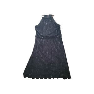 Add a touch of elegance to your wardrobe with this stunning R & M Collection black lace sequin dress in size 14. The dress features intricate lace detailing and sparkling sequins that will make you stand out in any event. The black color adds a classic touch to the dress, while the lace fabric type enhances its feminine side.