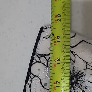Very good pre-owned condition. See pictures for reference. Measurements taken while laying flat & are approximate. The straps may have been taken up but as pictured, can be let back out if needed. In picture #5 shows where one of the rhinestones came off, therefore has a slight yellow tint.
