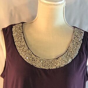 R & M Collection Plum Jersey Crew Neck Rhinestones Sleeveless Sheath Dress 10