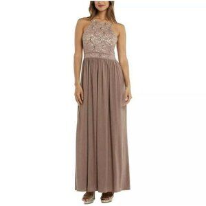 R & M Collection Taupe Gown Sleeveless Halter Maxi Evening Fit + Flare Dress 8