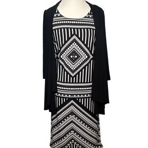 R & M RICHARDS Dress with attached cardigan Geometric print Size 14 Like new
