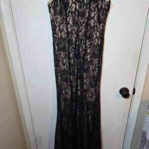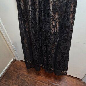 R & M Richards Black Lace Halter Neck Keyhole Mermaid Trumpet Evening Gown