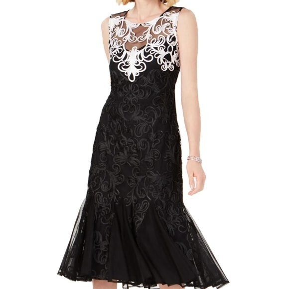 R & M Richards Black and Shite Soutache Midi Dress New with Tags Size 10