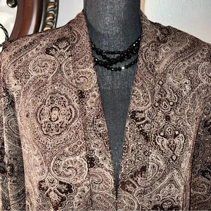 R & M Richards Brown Black Paisley Print Copper Sparkling Evening Jacket