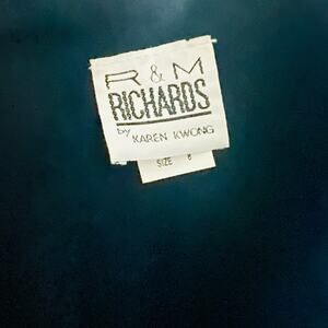 R & M Richards By Karen Kwong Button Up Two Piece Shirt Pants Set Size 8 Navy