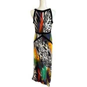 R & M Richards Colorful and Bold Mixed Animal Print Long Sleeveless Maxi Dress. Size 8