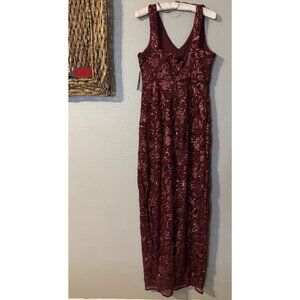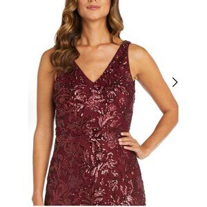 R & M Richards Dress 10P Merlot Wine Sequin Formal Prom Wedding Cruise Party NEW