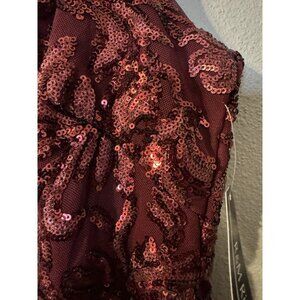 This pretty dress is from R & M Richards in a petite size 10. Merlot is the color which is a rich deep wine/red. Covered in sequins.
