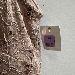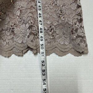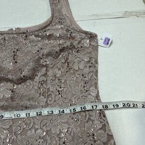 R & M Richards Dress 14 Blush Mauve Lace Sequin Overlay Maxi Gown Fairy Event