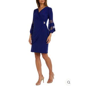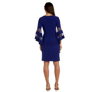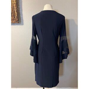 R & M Richards Dress 8 Navy Illusion Stretch Wedding Party Cruise $120 Washable