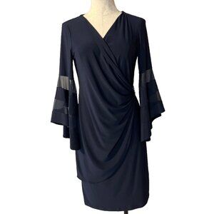 Wrap around illusion navy belle sleeve dress