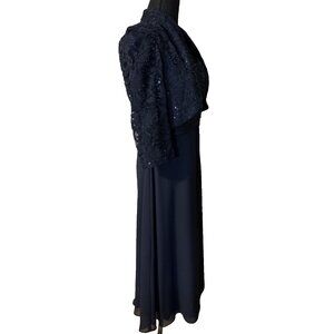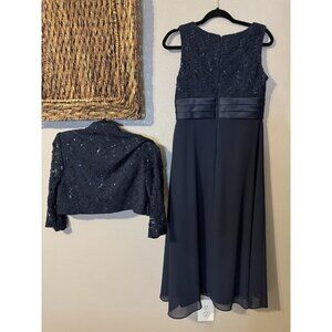 R & M Richards Dress & Jacket 8P Navy Blue Shimmer Lace Cruise Wedding Party