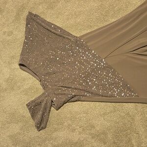 R & M Richards Jumpsuit with Sequined Draped Shoulders Lavender Size 6