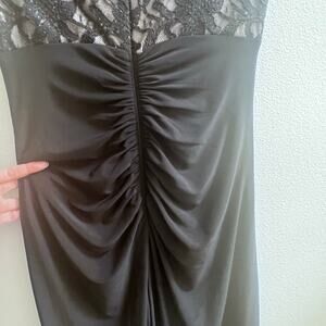 R & M Richards Maxi Dress Evening Gown Ruched Lace Detail Black Size 6 Tall
