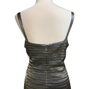 R & M Richards Metallic Gray Midi Sleveless Ruched Accordian Style Dress Size 14