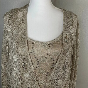 R & M Richards NWT 2 piece champagne sequined dress size 16WP