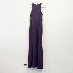 R & M Richards Nightway Glitter-Knit Gown, Size 4 Mulberry