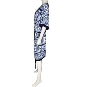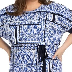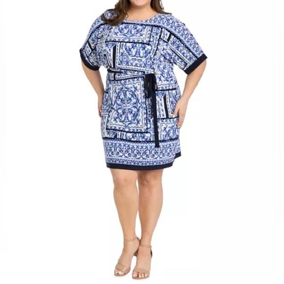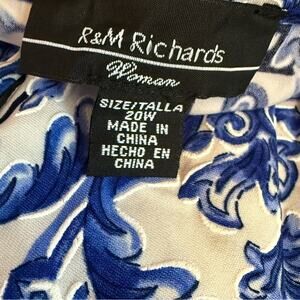 R & M Richards Plus Size Printed Blouson A-Line Dress White/Denim Sz 20W