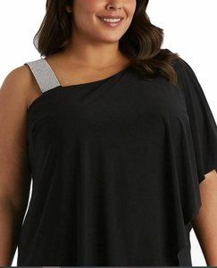 NWT R & M Richards Plus Size Rhinestone-Trim One-Shoulder Dress Asymmetrical Drape 20W