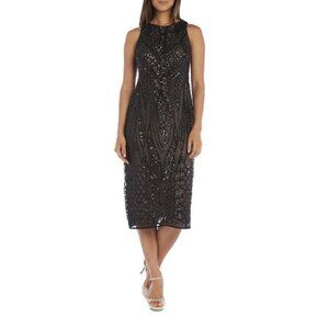 R & M Richards Sequin Dress in Black/Nude New With Tags Size 12P