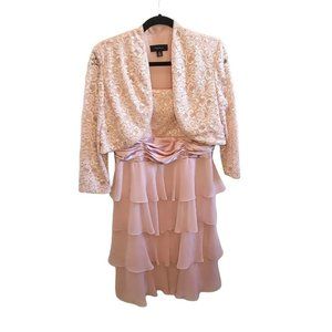 R & M Richards Sz 14 Dusty Rose Pink Mother Of Bride Formal Tiered Dress Set