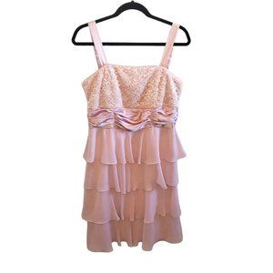 R & M Richards Sz 14 Pink Mother Of Bride Formal Tiered Dress Set Lace Jacket