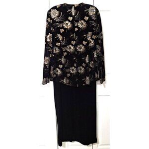 R & M Richards Women's 14 Black Velvet Dress w/Embroidered Silver/Gold Jacket