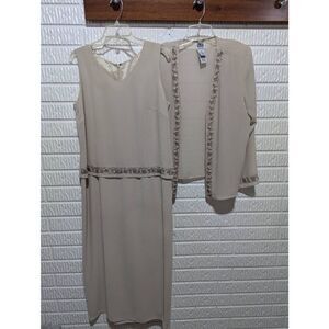 R & M Richards Karen Kwong Women's Beige Beaded 2Pc Formal Dress & Jacket Size 14P