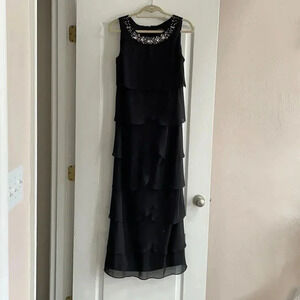 Floor length. Beautiful details and layers in fabric; Shoulder to bottom of dress is 55 inches and from neck to bottom is 50 inches