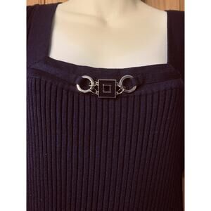 R Q T Womens Plus Size XL Navy Blue Ribbed Sweater Pullover Top Short Sleeve NWT